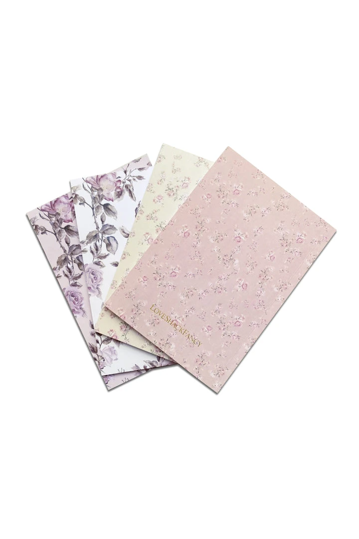 A set of 4 multi-print floral notebooks for when you’re feeling inspired. Each notebook has a rose watercolor print at the front followed by plain, unlined paper.