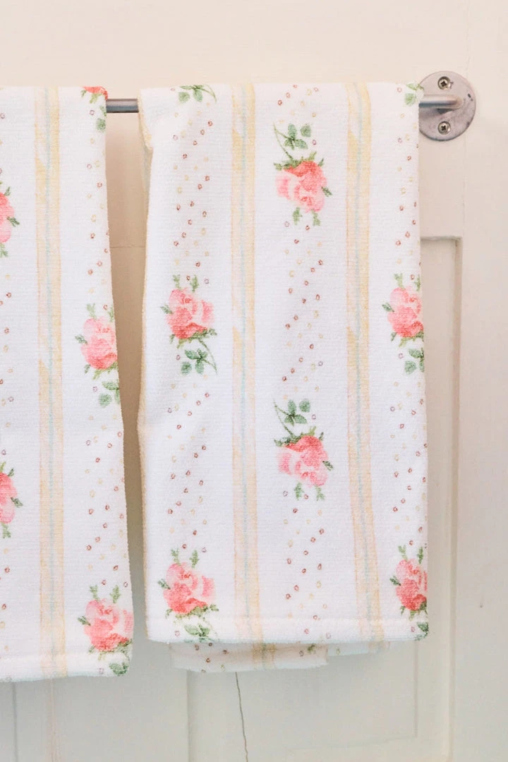 New this season, our printed woven hand towels are sure to bring extra joy to your bathroom. Available in traditional LoveShackFancy prints, our Hand Towel is extra plush and measures 20″ x 30″.