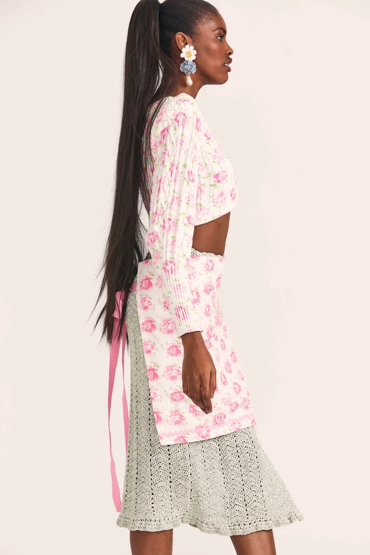 Cake baking cute in our Country Song Floral Half Kitchen Apron from our collaboration with Hedley & Bennett. Made from 100% cotton with our classic rosebud print, this playful piece features a pretty in pink wrap-around strap, functional front pocket and rick rack trim. Shown here in Antique Rosebud.