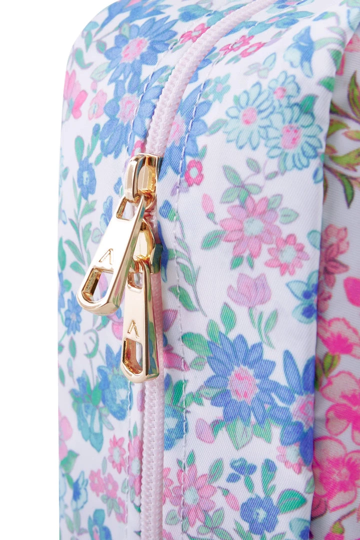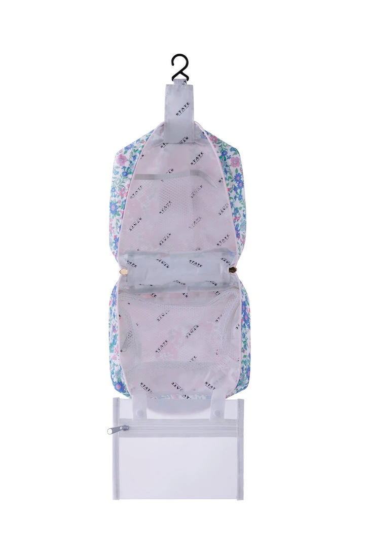 The LoveShackFancy x STATE Bensen Dopp Kit is the sweetest handheld pouch for your on-the-go travel necessities. The zip around closure encases a tri-compartment kit with perfect organization for all of your toiletries. The cheerful pink and blue floral print is topped off with a pretty-in-pink bow handle. Complete the set with our LSF x State Kane Backpack. Shown here in Sparkling Pink Punch.