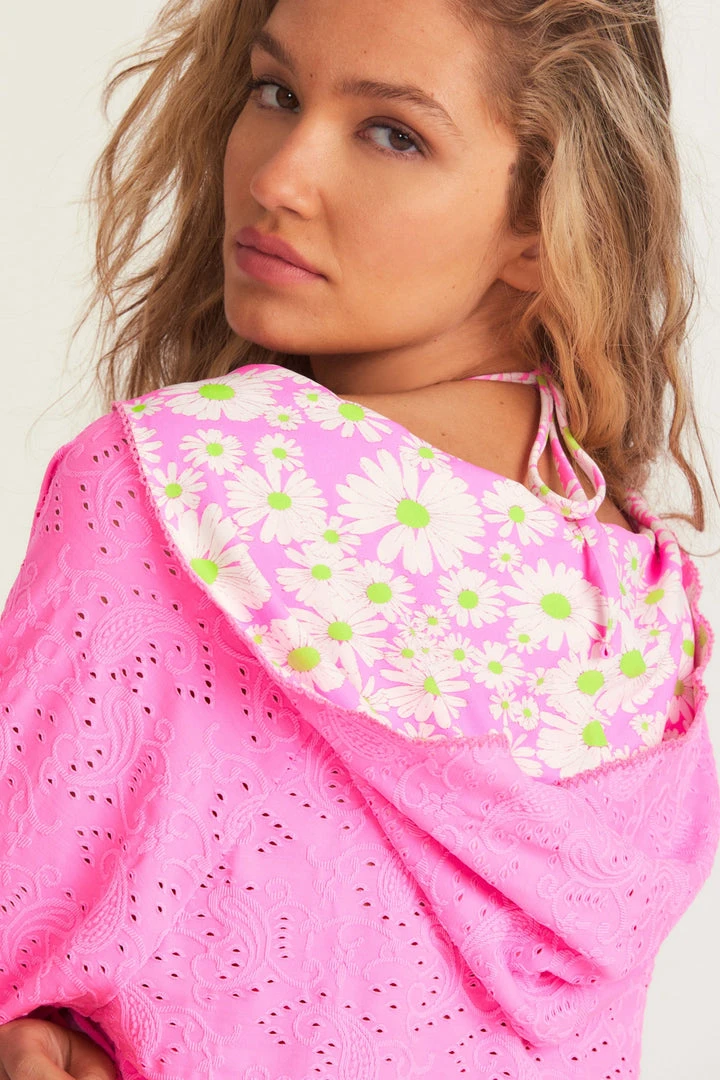 Cool off after a day on the shore in our LoveShackFancy x Hurley Zip Hoodie. This cutie zip up features a pink eyelet print with a daisy print on the inside. Pair it with our LoveShackFancy x Hurley Tiered Mini Skirt. Shown here in Cotton Candy.