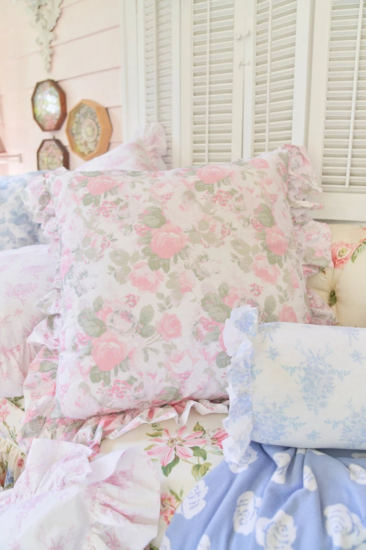 Sweeten up your space with our cozy accent piece. This classic cotton pillow, showcasing our signature prints, adds a timeless touch to any room. Featuring a vintage-inspired floral print and ruffles on the exterior, each pillow includes a removable insert and zipper closure for added convenience. Mix and match with our Palm Beach Rose Duvet Cover and Sham Set. Measures 26 x 26″.