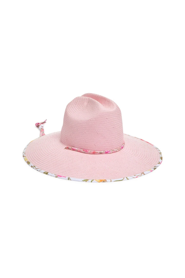 Look your best on the beach with our LoveShackFancy x Hurley Straw Hat. Shade yourself with this blush-pink hat with a hibiscus floral print underneath. This hat features a drawstring strap for a comfy fit. Pair with our LoveShackFancy x Hurley Cropped Rib Tee. Shown here in Hibiscus.